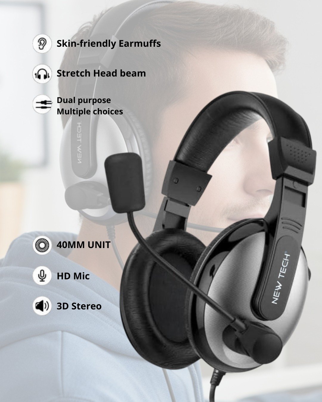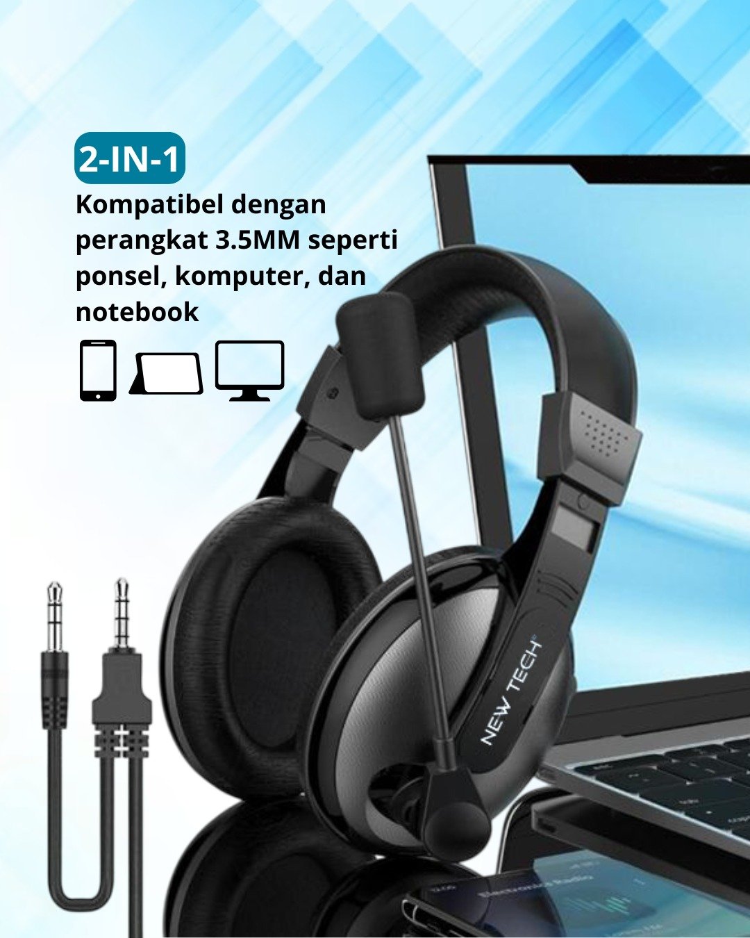 NEWTECH NT-17 Headphone Gaming 2-in-1 dengan Mikrofon HD