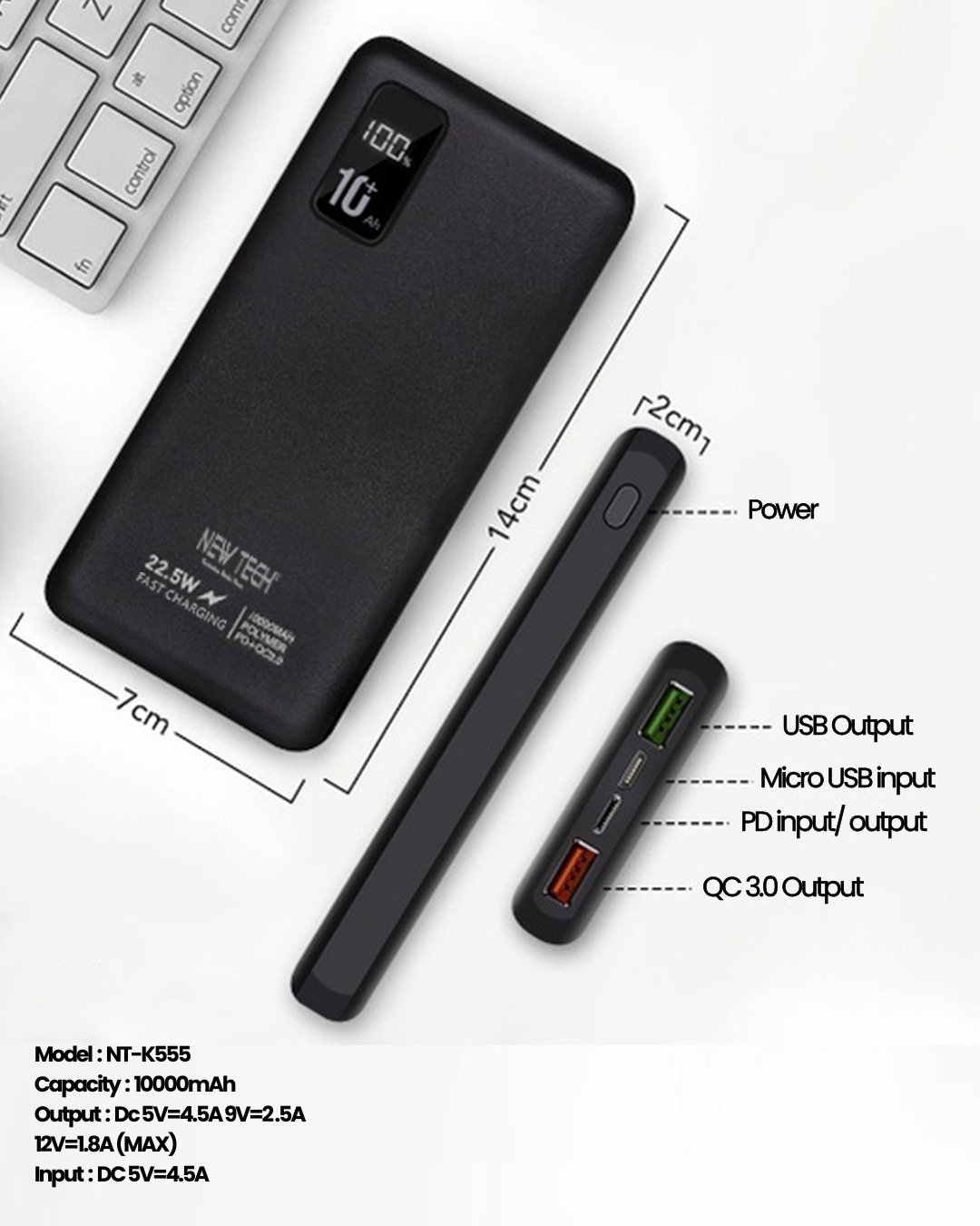 NEWTECH NT-K555 Power Bank 10000mAh Fast Charging 22.5W PD/QC 3.0