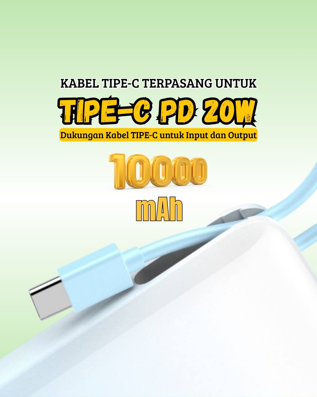 Tidak perlu repot membawa kabel tambahan! Dilengkapi kabel bawaan tipe-C yang berfungsi sebagai input dan output, praktis dan efisien untuk aktivitas sehari-hari.